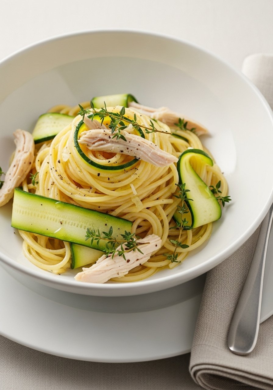 17. Zucchini Ribbon Chicken Spaghetti with Lemon & Thyme