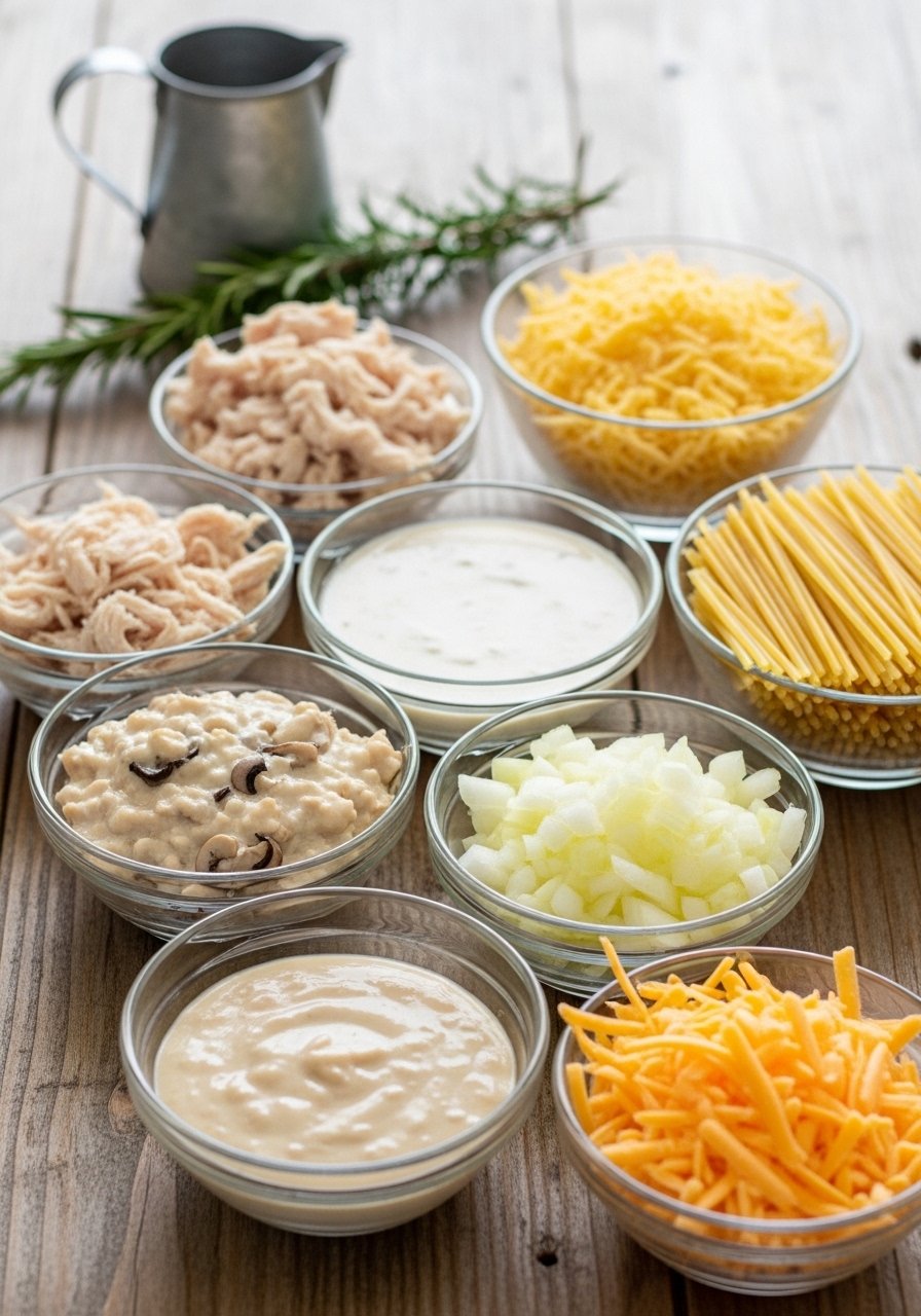 Start by choosing how you’ll cook the chicken: rotisserie for speed, or a brief braise in a slow cooker if you’re prepping earlier. Aim for 6–8 cups shredded cooked chicken for a full 9×13 casserole that feeds 8–10.