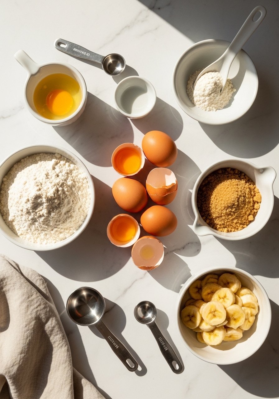 Start with ripe bananas (lots of brown speckles). They should be soft and sweet — about 1 to 1.5 cups mashed for two large bananas. Use a hand mixer or fork to mash; a hand mixer speeds whipping if you want a lighter crumb.