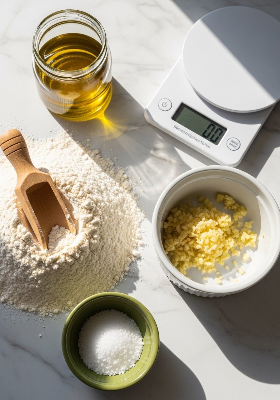 - Weigh flour and water on a digital kitchen scale for exact hydration.