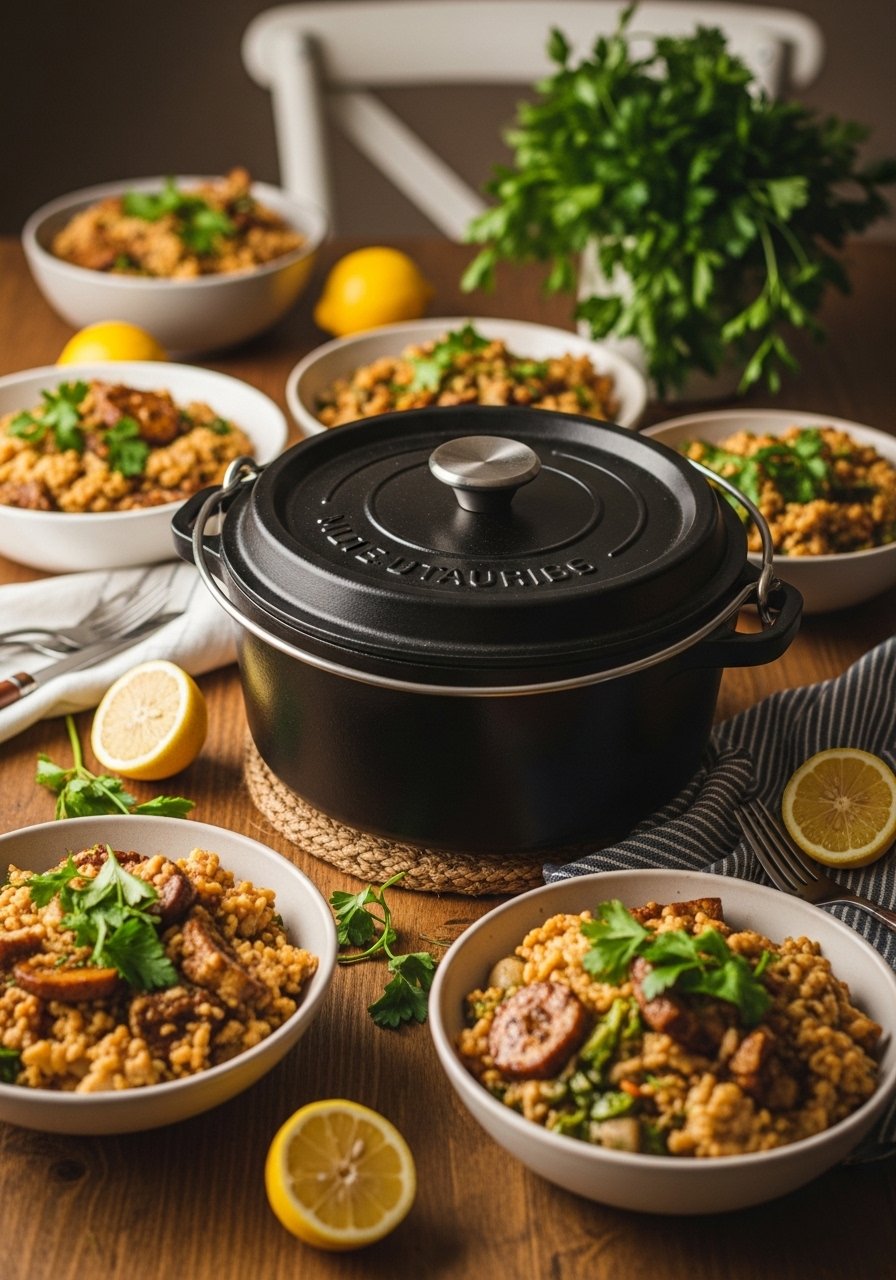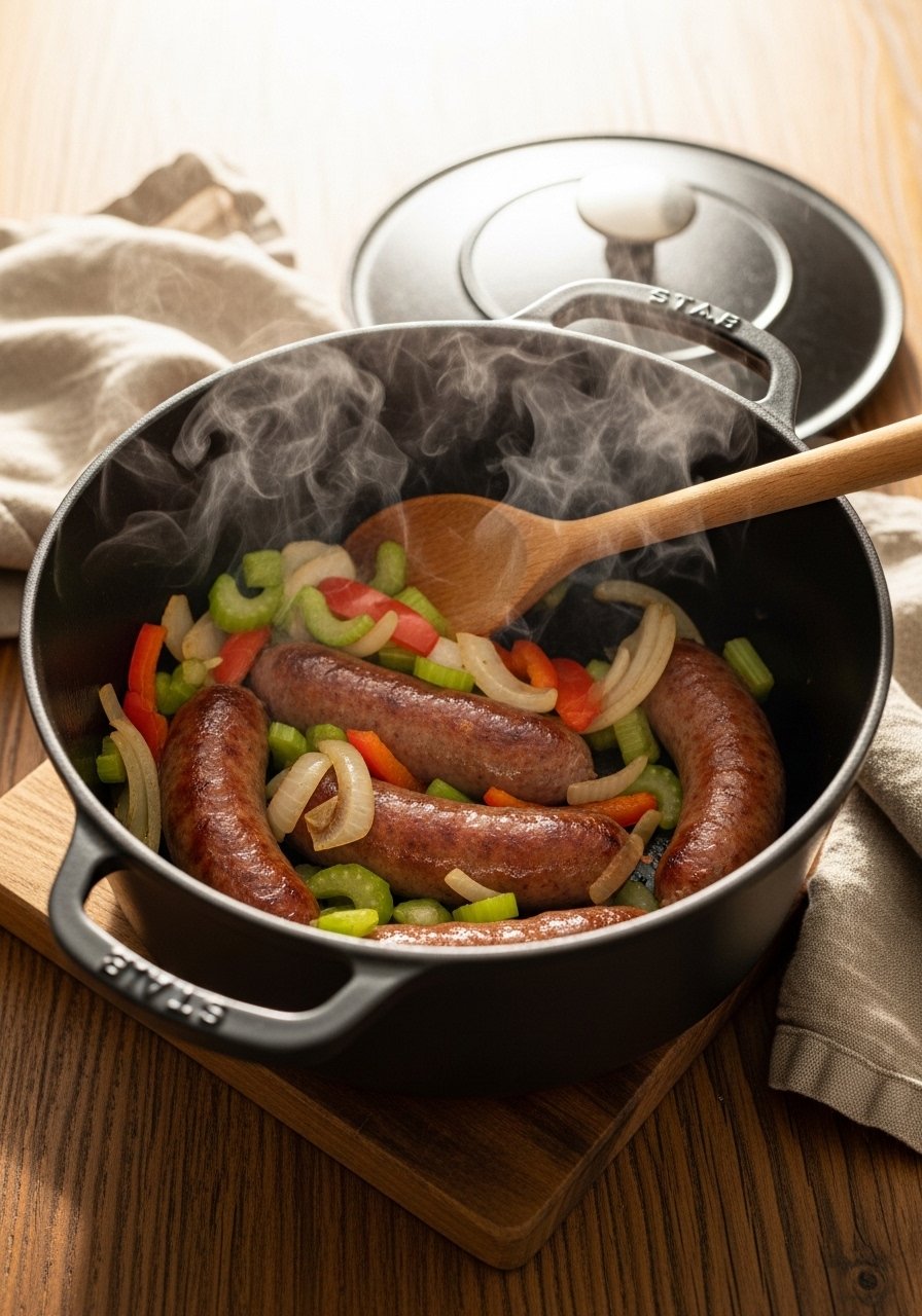The secret is the right pan and a sharp knife. A 6-quart cast iron Dutch oven gives steady heat for browning, and a sharp chef's knife speeds prep and keeps veggies intact. Follow this guide to learn how to make smoked sausage jambalaya that is bold spicy and packed with authentic Cajun flavor, step-by-step, even on weeknights.