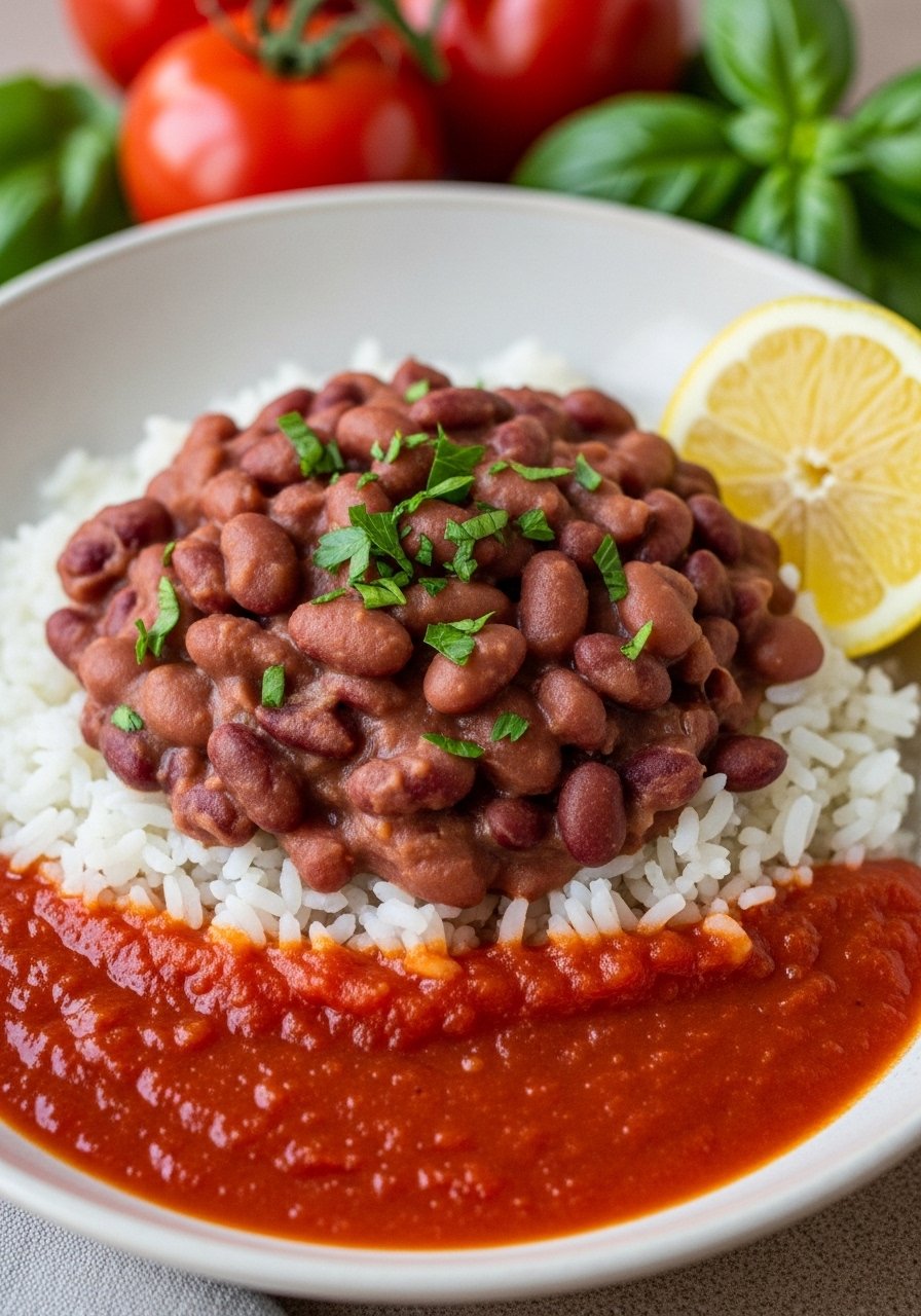 16. Creole Red Beans & Rice with Tangy Tomato Sauce