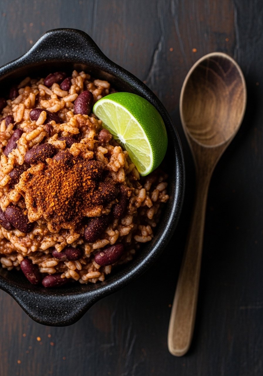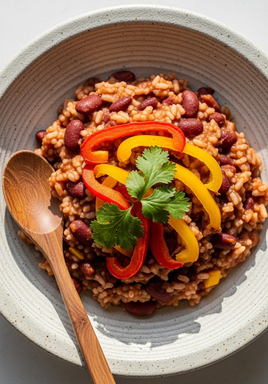 This Creole take amplifies tomatoes and herbs for a tangy, aromatic red beans and rice recipe without meat. Use rich tomato paste and a splash of vinegar for balance.
