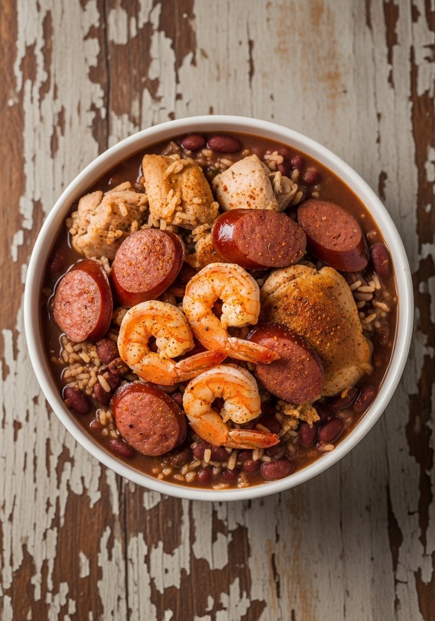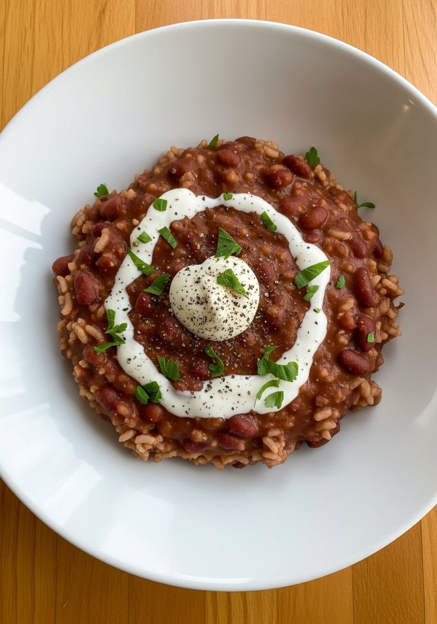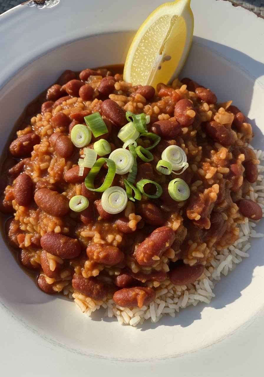 This is the red beans and rice recipe most families grew up with—creamy beans slow-simmered with smoky ham hock and andouille, served over fluffy white rice. The texture is thick and spoon-coating, with a savory, onion-garlic-Cajun base and a peppery finish. Great for weekend meal prep and feeding a crowd.