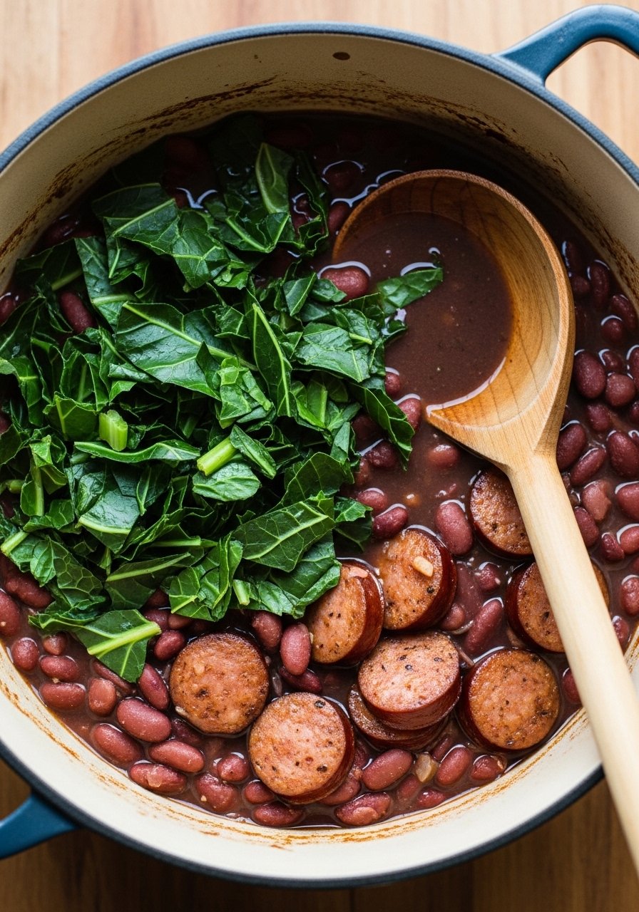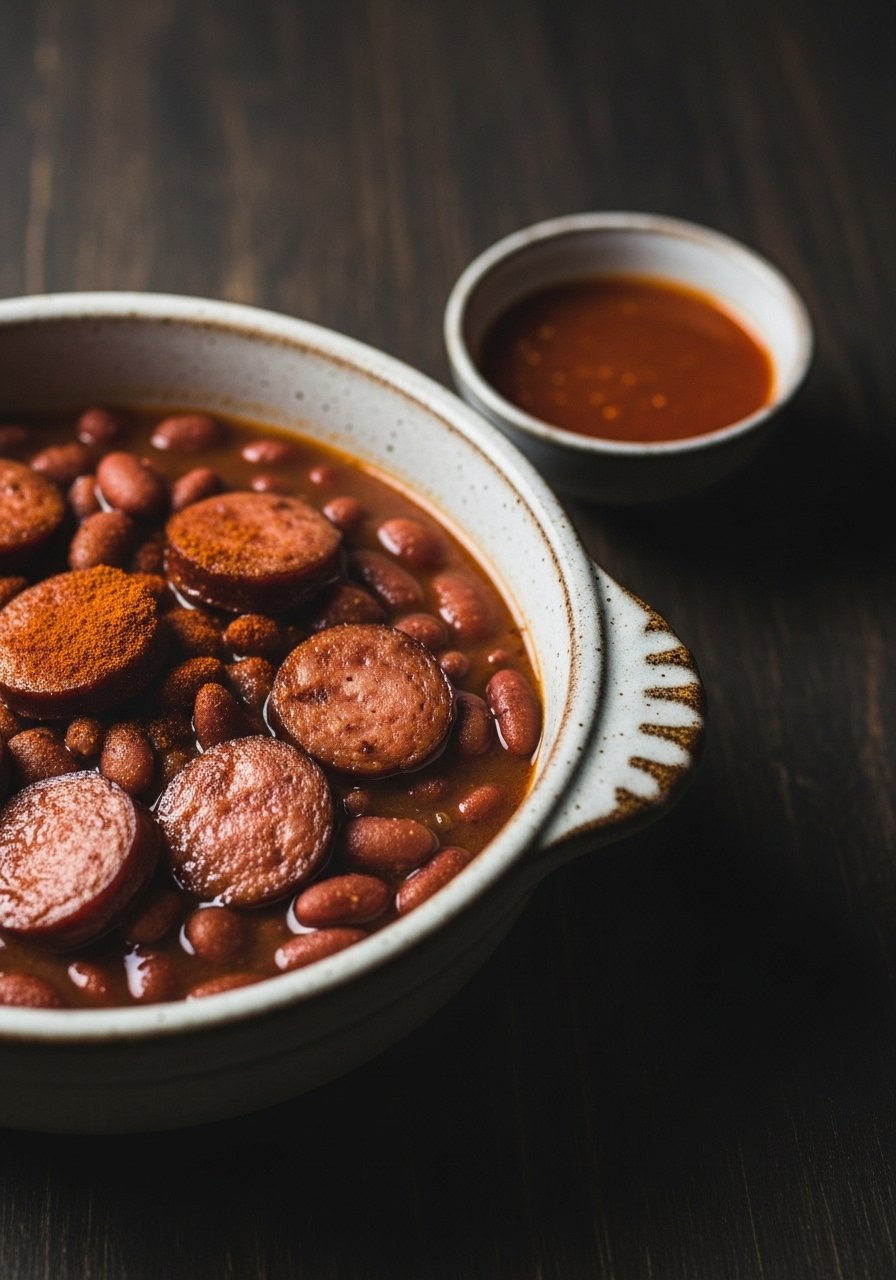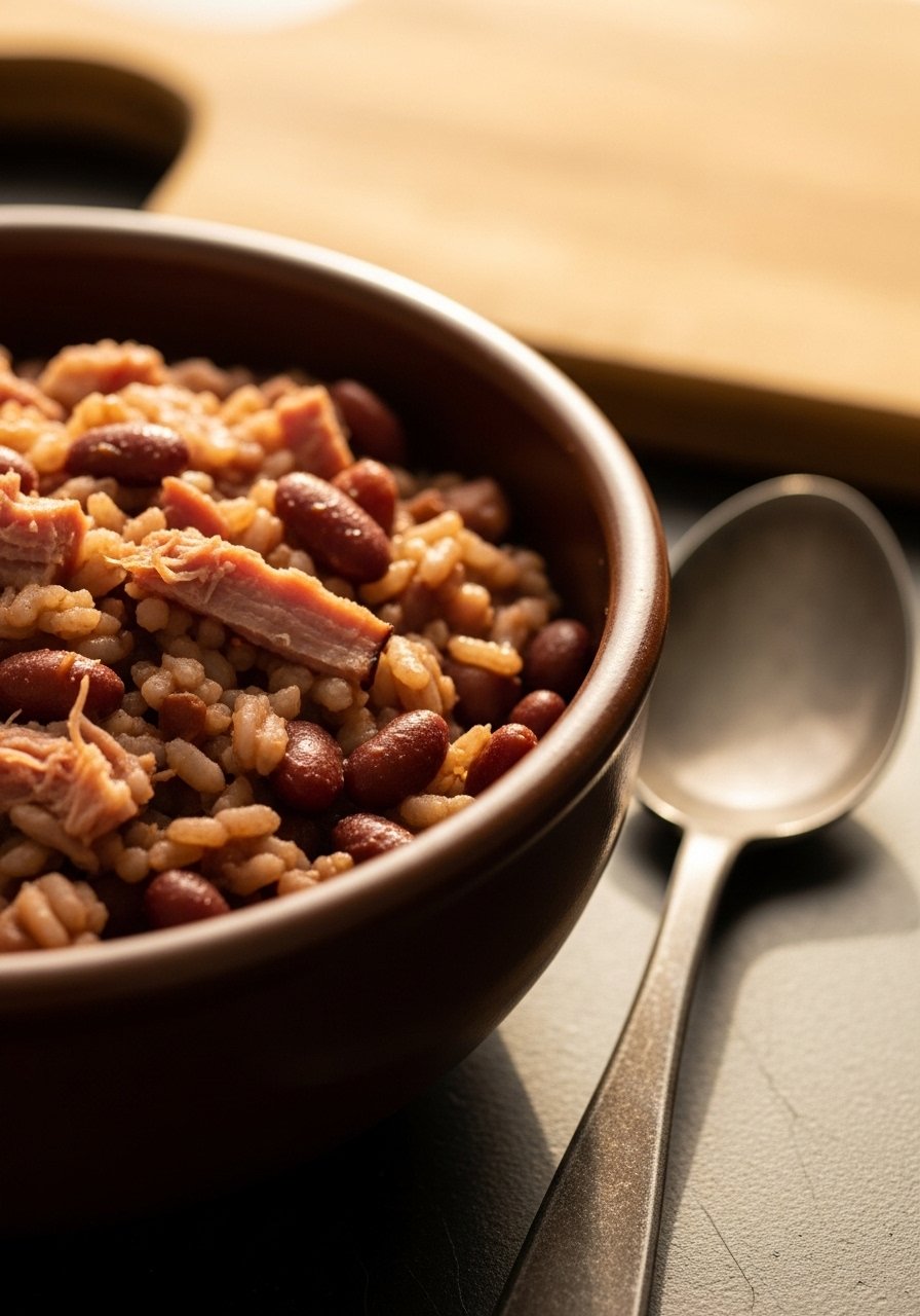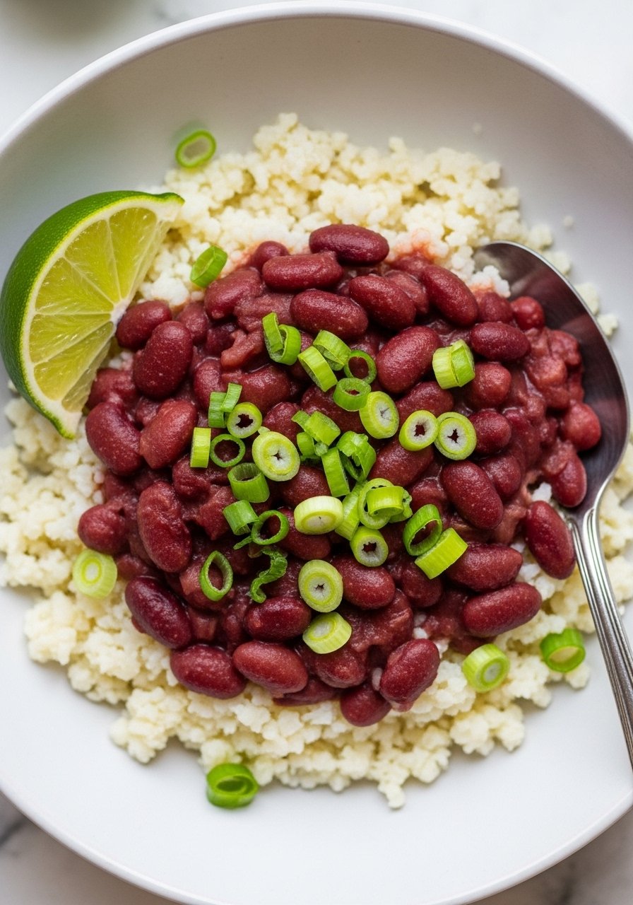 This is the red beans and rice recipe most families grew up with—creamy beans slow-simmered with smoky ham hock and andouille, served over fluffy white rice. The texture is thick and spoon-coating, with a savory, onion-garlic-Cajun base and a peppery finish. Great for weekend meal prep and feeding a crowd.