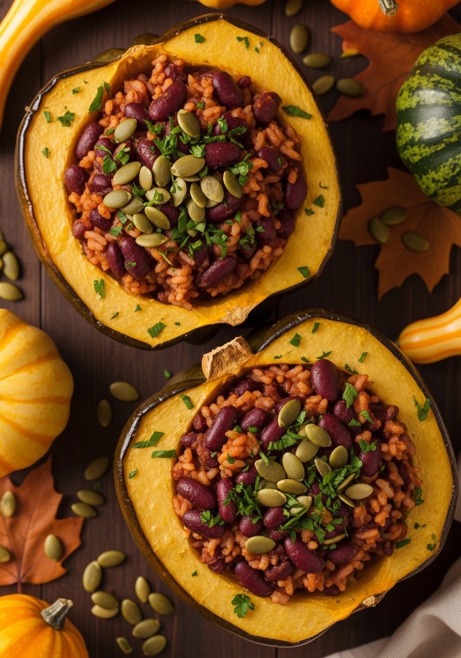 25. Red Beans and Rice Stuffed Acorn Squash (Autumnal)