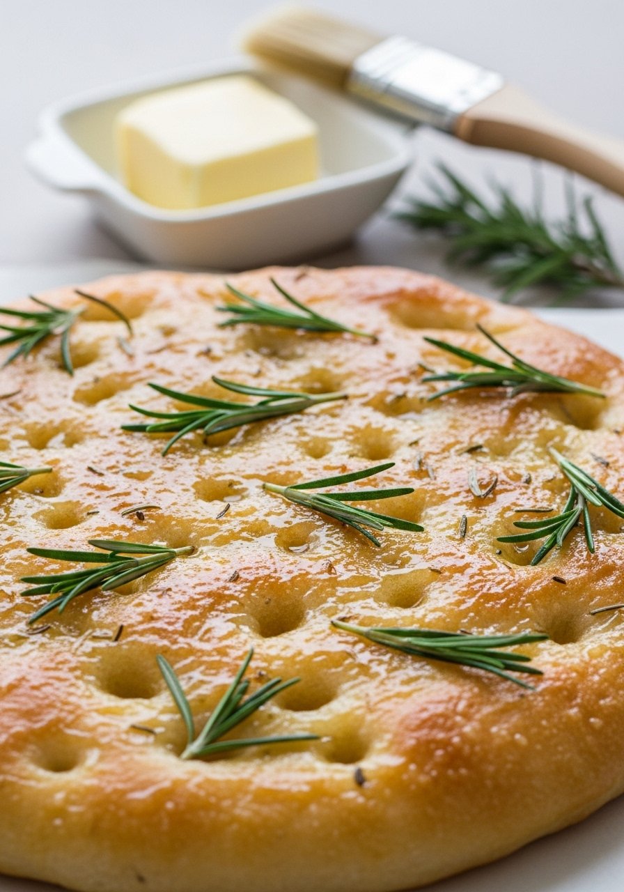 This version uses a garlic-infused butter to brush the focaccia, creating a rich, golden crust with sweet roasted garlic notes that complement rosemary.