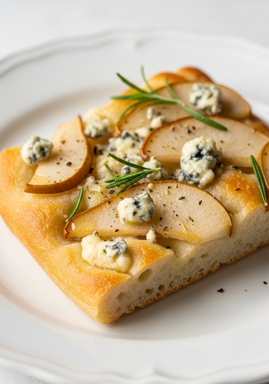 21. Rosemary Focaccia Bread with Caramelized Pears and Blue Cheese