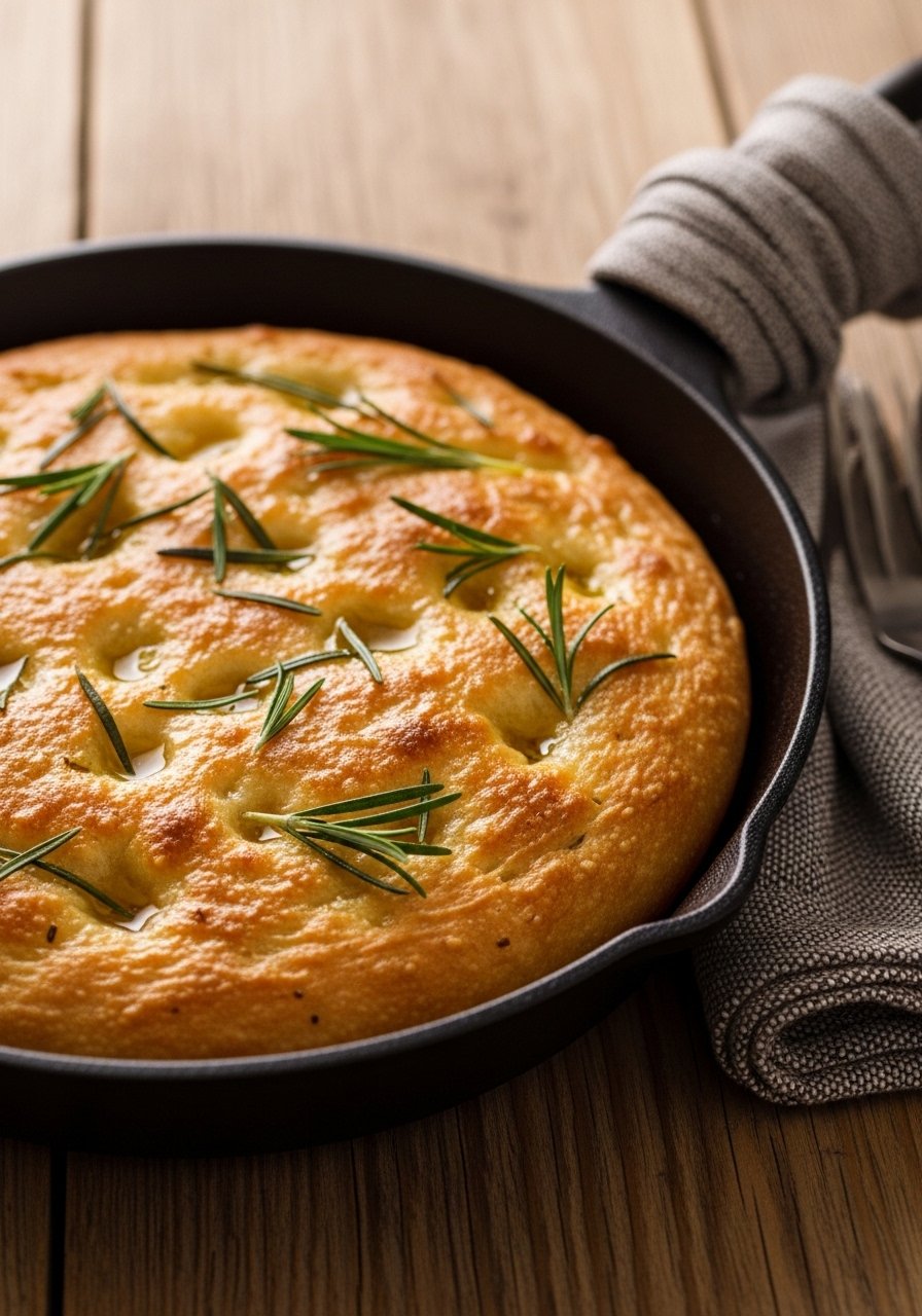 For a golden bottom and slightly thicker crust, try skillet rosemary focaccia bread cooked in a cast iron pan. The pan creates a crisp base and is perfect for one-pan dinners.