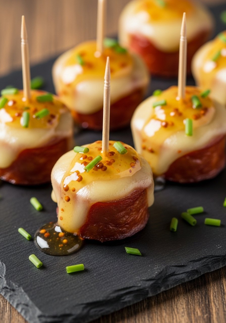 1. Cheesy Smoked Sausage Bites with Honey Mustard Drizzle