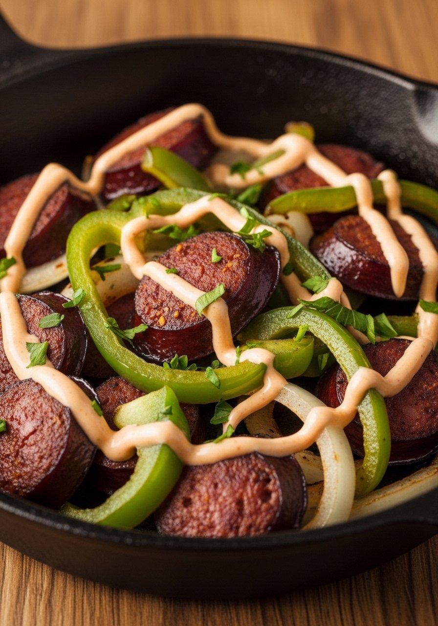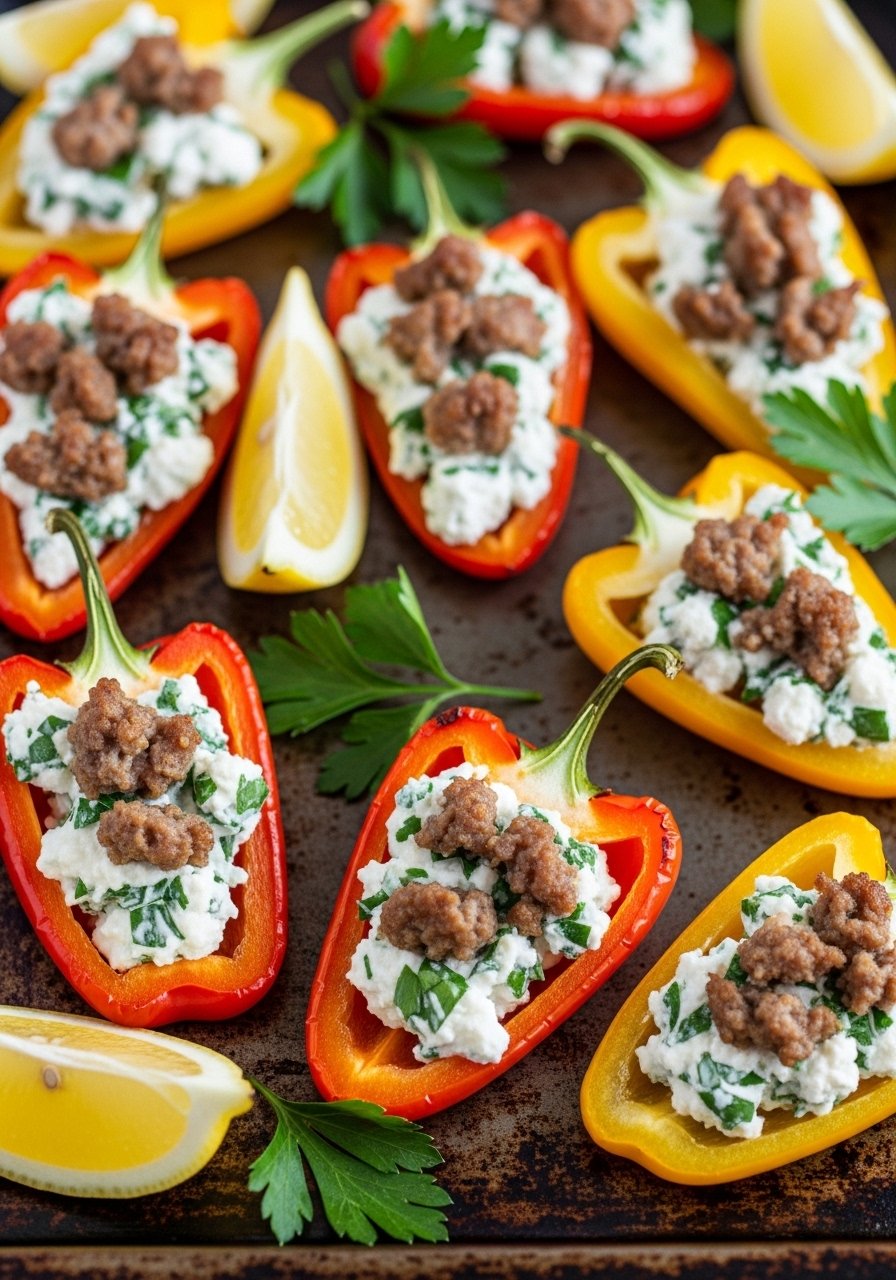 Sweet mini peppers cradle a creamy, spicy smoked sausage filling for a low-carb, colorful appetizer. They’re quick to roast and pop-ready for guests who want fresh textures with smoky heat.