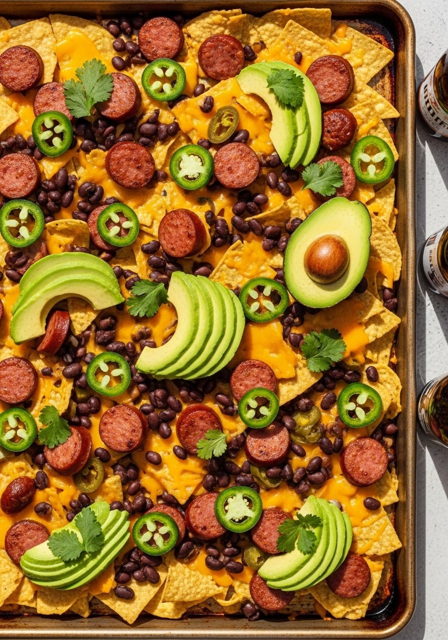 5. Sheet Pan Smoked Sausage Nacho Spread (Game Day Favorite)