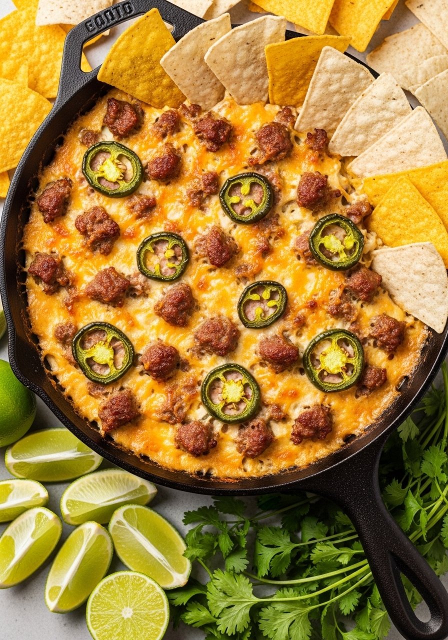 This sheet pan nacho spread layers smoky sausage, melty cheese, and all your favorite toppings for a shareable game day centerpiece. It’s fast, flexible, and scales easily for crowds.