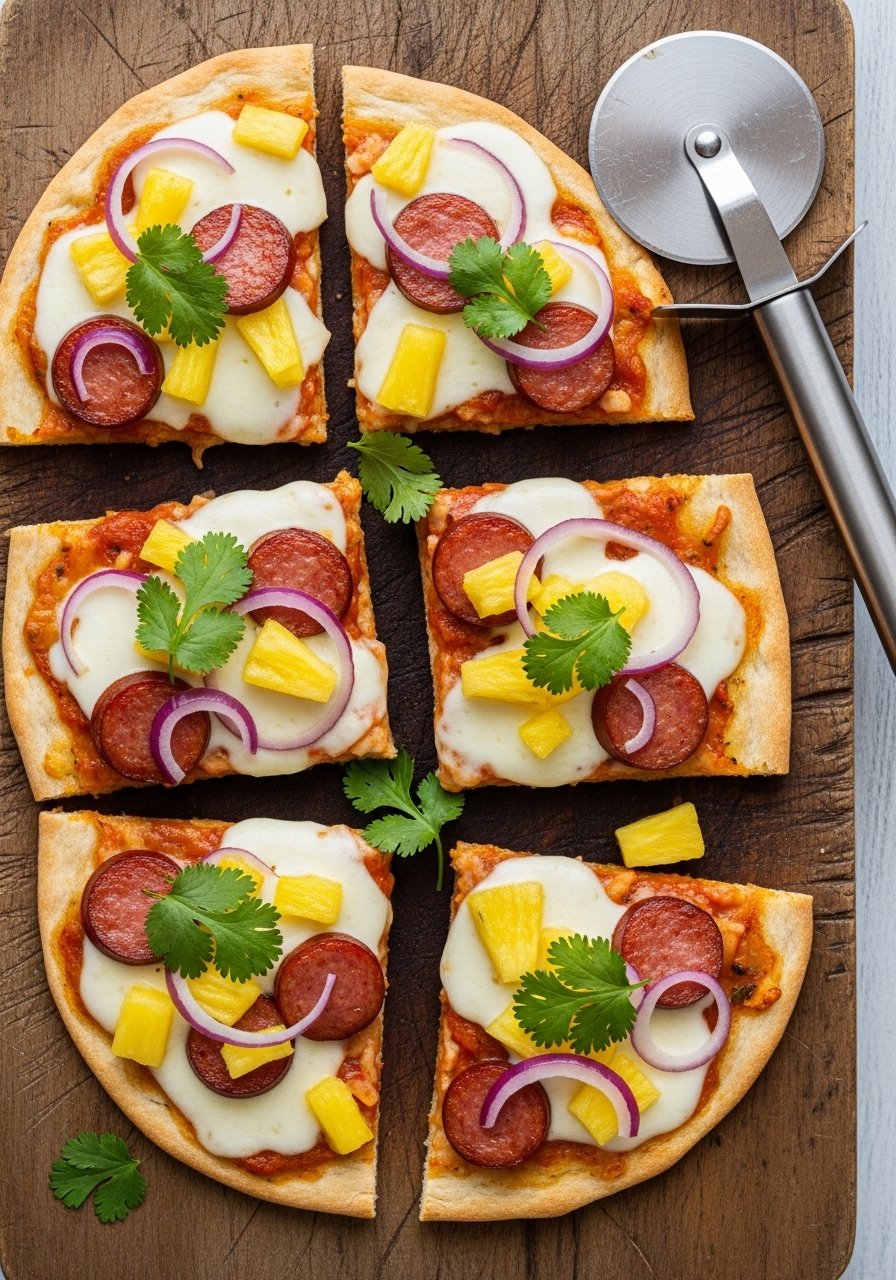 These flatbread bites balance smoky sausage with sweet pineapple and gooey cheese for a handheld pizza-style appetizer. They bake quickly and slice into perfect party portions.