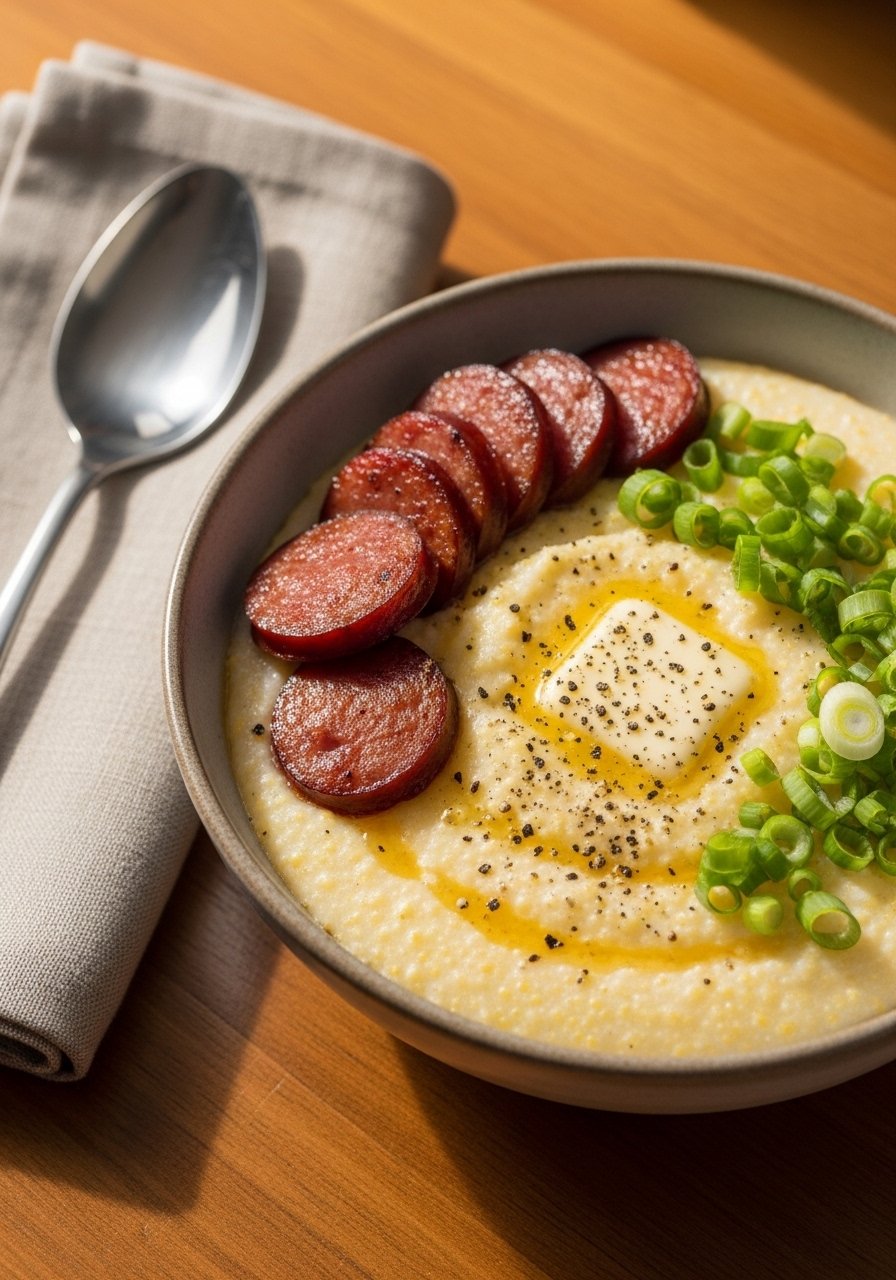 2. Smoked Sausage and Creamy Grits Bowl
