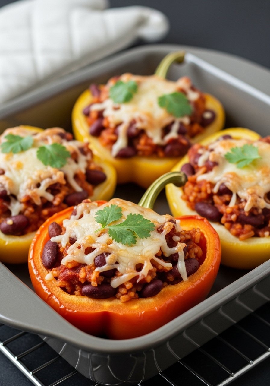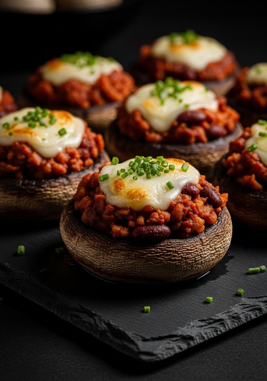 - Fill each mushroom with spicy red beans and rice, pressing down gently.