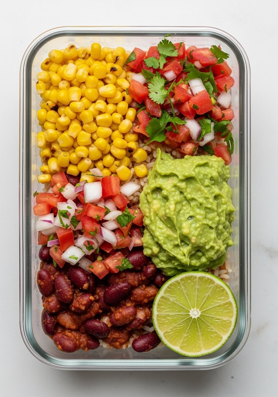 A burrito bowl is a meal-prep workhorse. Pack spicy red beans and rice with fresh toppings for easy lunches. Use a set of glass meal prep containers to keep ingredients fresh and separate.