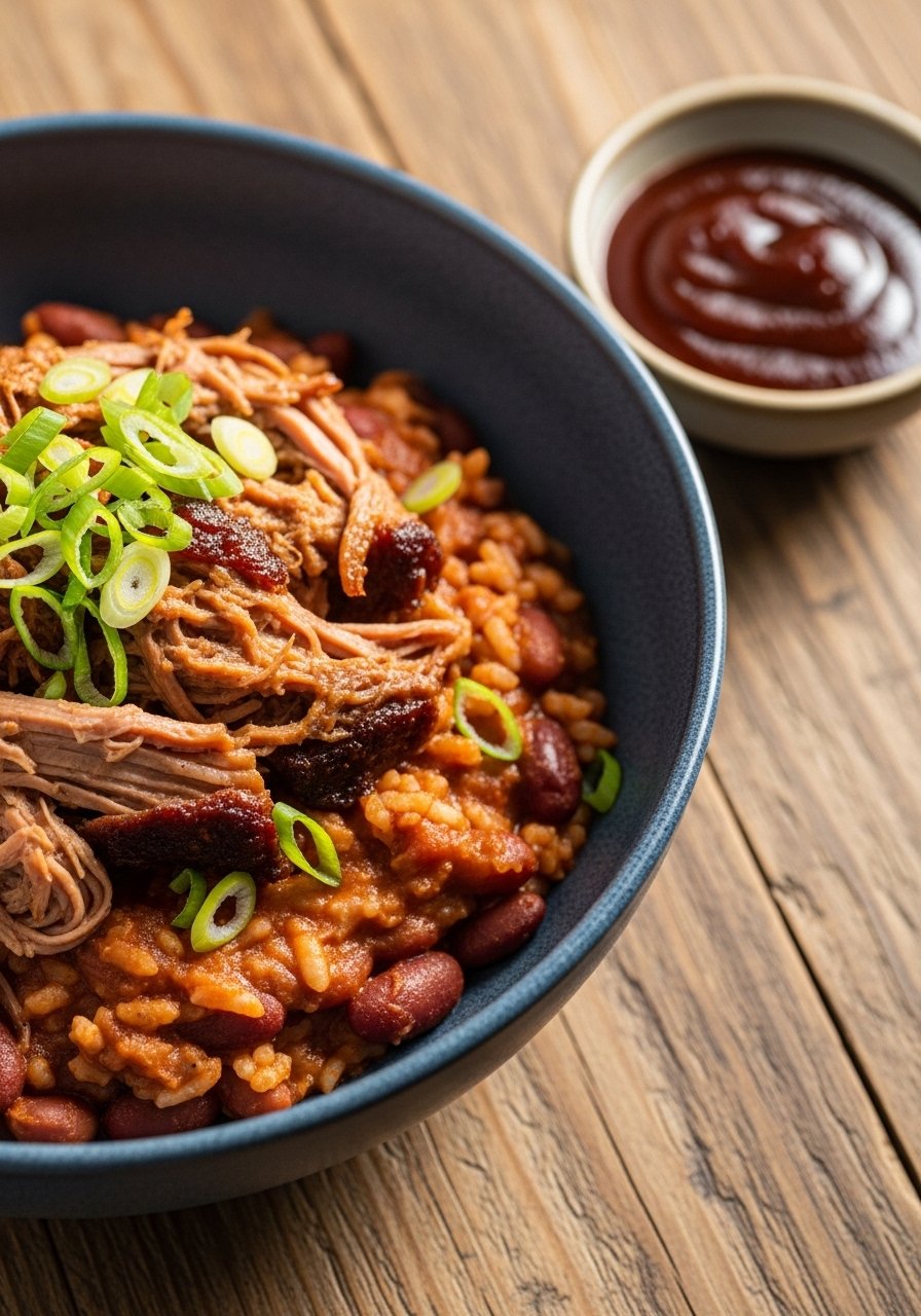 24. Spicy Red Beans and Rice with Pulled Pork (BBQ Fusion)